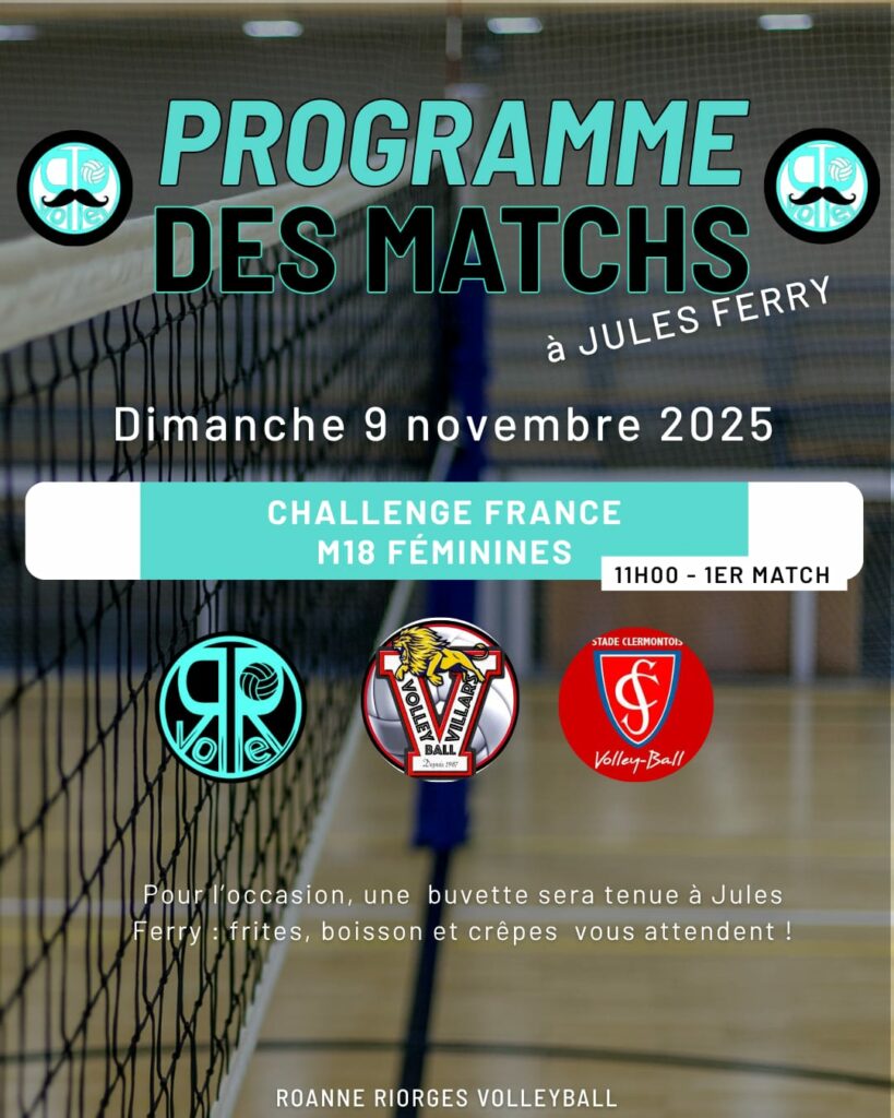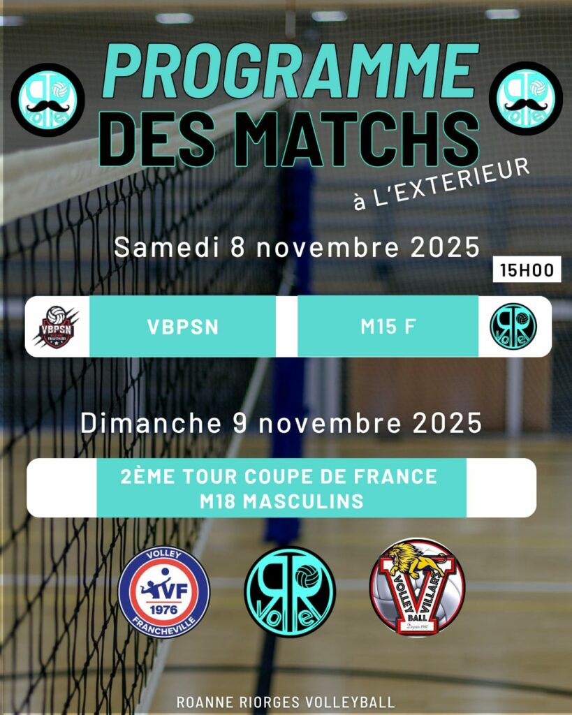 Les M18 masculins se deplaceront à Villars pour affronter également Volley Ball Francheville dans le cadre du 2eme tour de la Coupe de France et les M18 Féminines recevront à Jules Ferry les équipes de Volley Ball Villars (VBV officiel) et du STADE CLERMONTOIS VOLLEY BALL pour le challenge France!