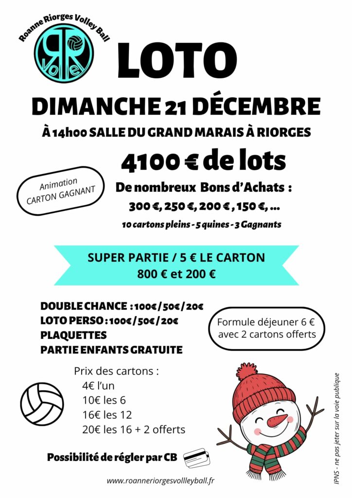 – Loto du Club : Dimanche 21 décembre Salle du Grand Marais