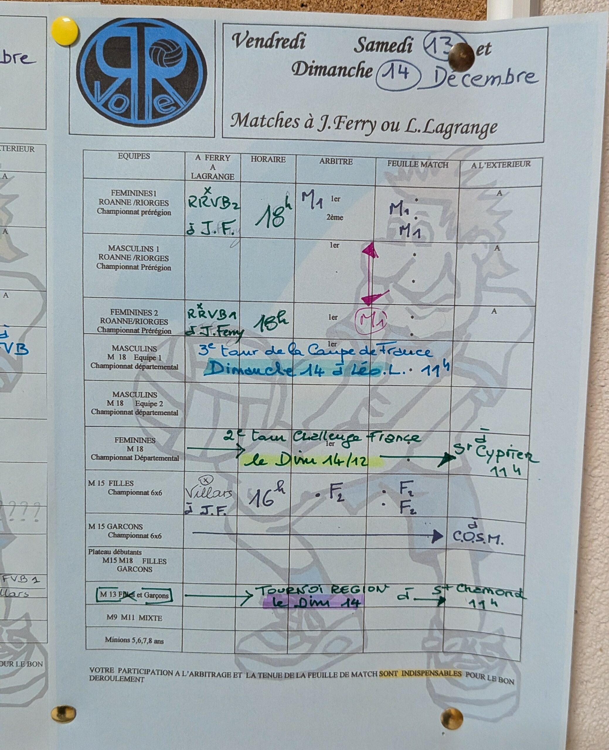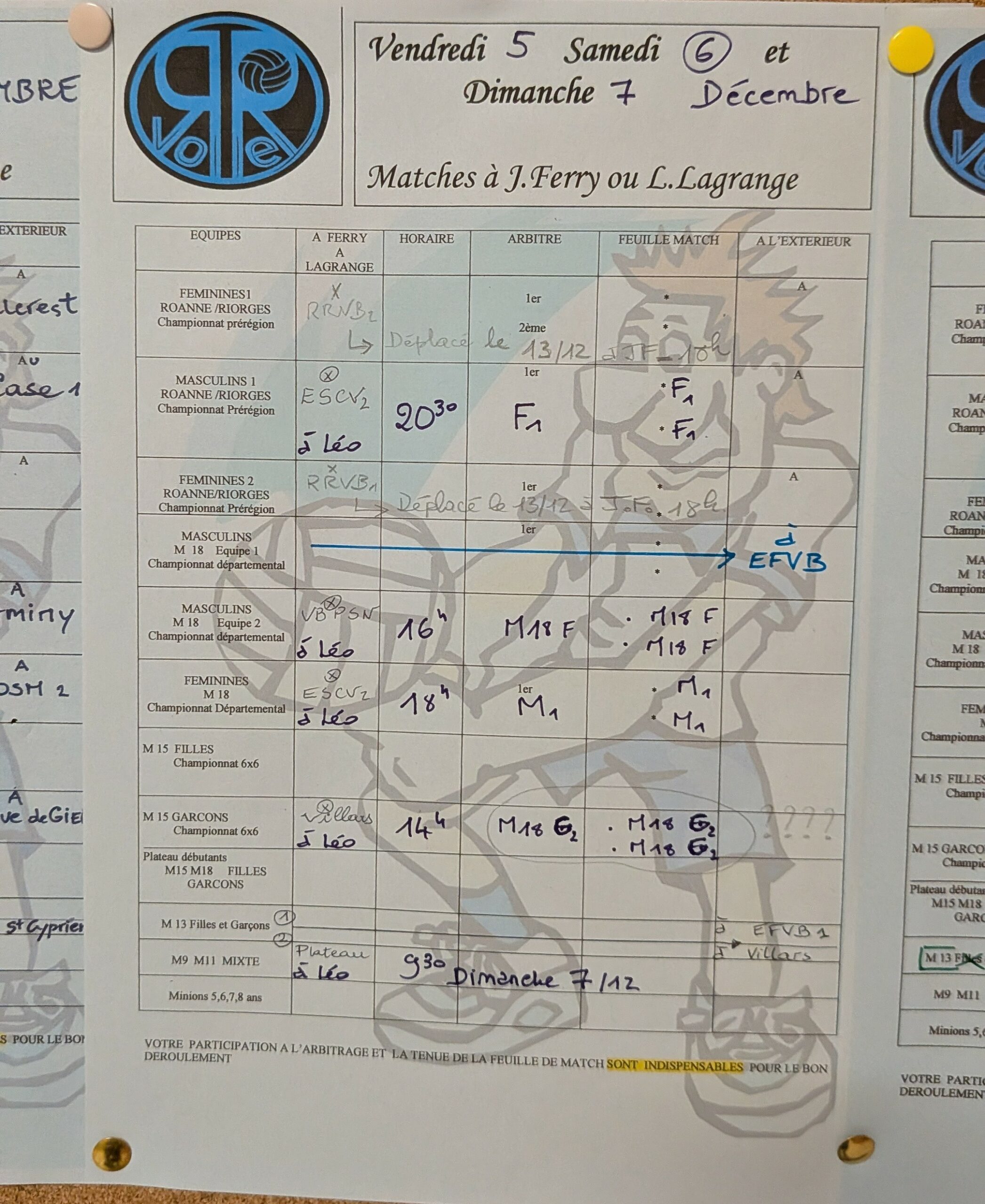 –> Retrouvez sur cette page les désignations d’arbitrage pour les matchs à venir ! Pensez à bien regarder les panneaux d’affichage dans les gymnases, des changements peuvent se produire après publication (même si nous essayons de nous montrer réactifs !)